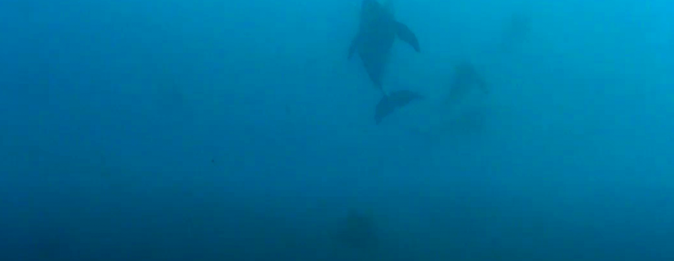 Al monitorear los peces usando un sistema de Stereo Video, Erika Gress, PhD, tuvo un encuentro cercano con un gripo de Delfines Nariz de Botella.
